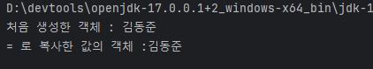 이제 deepCopiedPerson 객체의 값을 수정해주고 출력해주면 원본 객체는 수정되지 않고, 깊은 복제를 한 deepCopiedPerson 객체만 수정돼서 출력 됩니다.